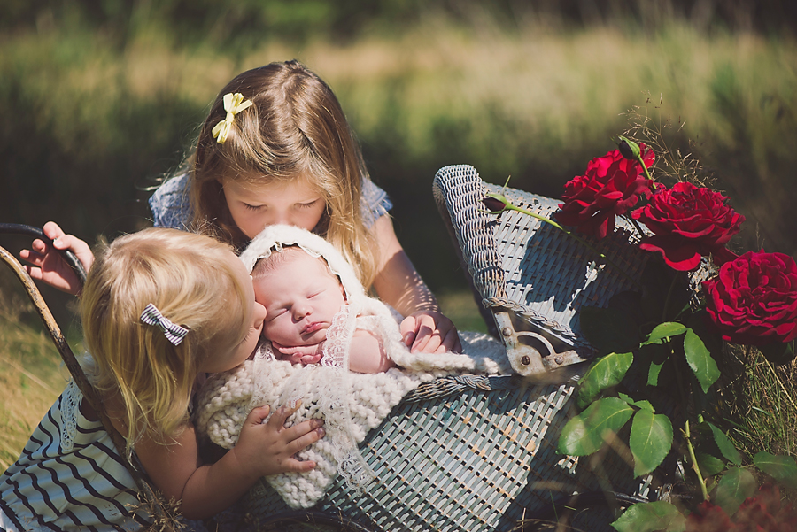 I brought some of my favourite props to use out in the fields.  It was the perfect setting for little Rosie!  Her two big sister simply adore her and I loved how patient they were with what we were asking of them.  It’s not an easy thing to do with young siblings!